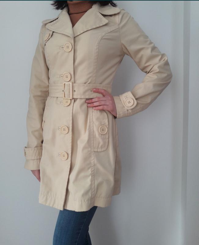 Тренч жіночий, фірма H&M, кольору слонової кістки, стан хороший. Розмір 34 (С). Без підкладки, є кишені.
