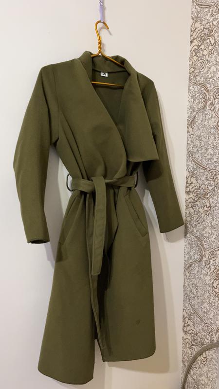 Пальто оливкового цвета, универсального размера. В хорошем состоянии, без катышек, есть дефект, но он убирается. Бренд Кристина Мандарина