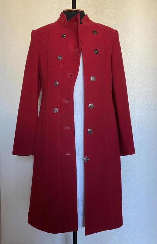 Жіноче вовняне пальто. Комір стійка, бічні кишені, на гудзиках. ПОГ - 46 см. ПОБ - 52 см. Довжина рукава - 66 см. Довжина виробу -104 см.