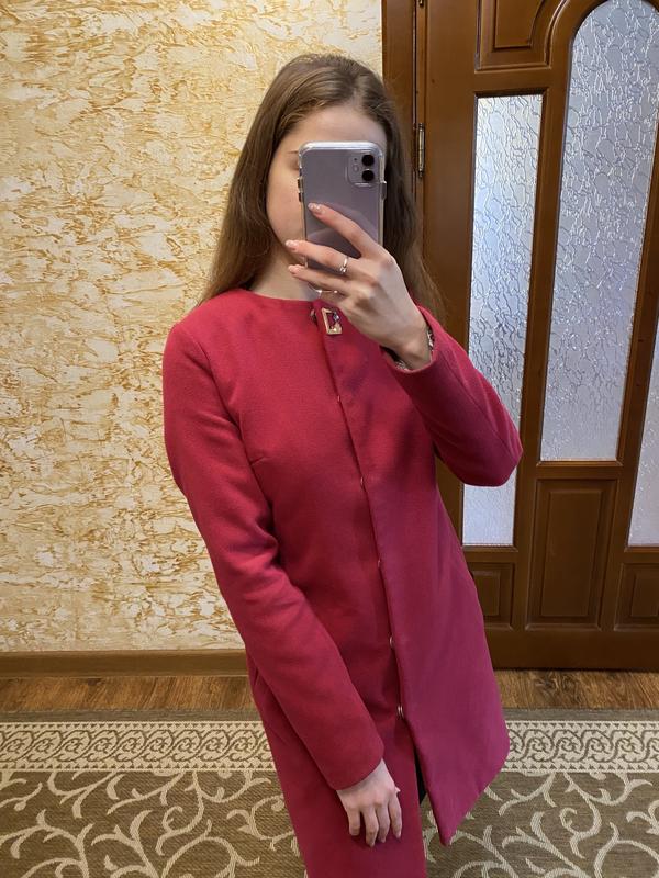 Пальто малинового кольору
