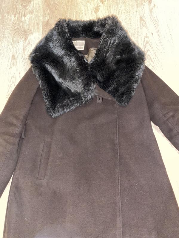 коричневе пальто жіноче з хутром штучним