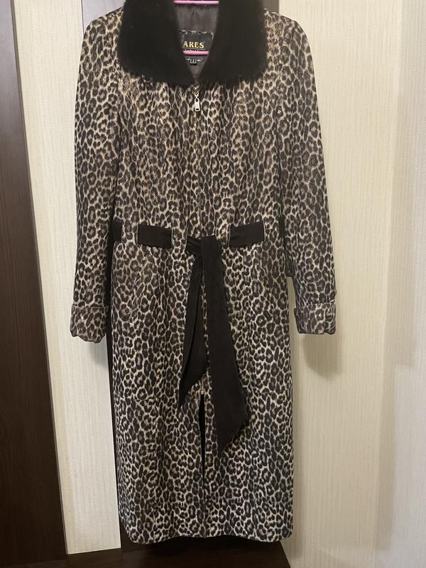 Пальто з натурального замшу, з лазерним нанесенням леопардового принту, комір з норки.