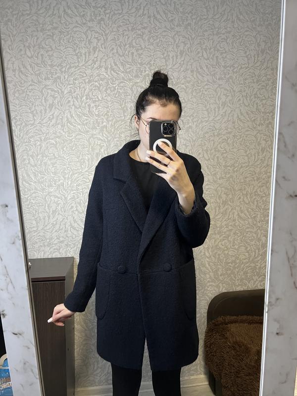 Жіноче стильне пальто вільного крою. Два великих кармани. Темно-синього кольору. З вмістом вовни💕 На підкладці❤️Підійда на осінь та весну💋