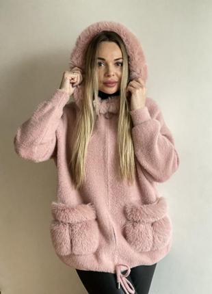 Женская куртка-бомбер из шерсти Альпака. Код 20229. Стильный молодежный бомбер прямого силуэта с капюшоном выполнен из шерсти Альпака-теплого, эластичного материала, который сочетает свойства шерсти верблюда и ламы. Капюшон и карманы бомбера декорированы евро-мехом. Куртка стиля Oversize подойдет на любой тип фигуры. Застежка молния. Карманы накладные. Универсальный размер 48-60. Цвет: Баклажан Черный Капучино Пудра Длина изделия 71-72 см Длина рукава 60 см Изделия из шерсти Альпака стираются при температуре 30°.ске.Не надавливайте на кнопку Купит, технические проблемы подписывайтесь..ждю)
