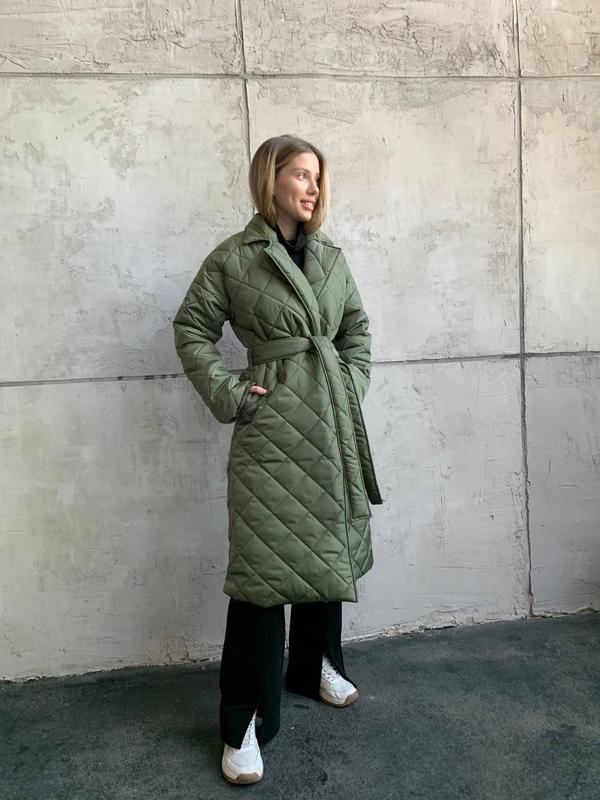Стёганное пальто высокого качества до минус 7 Размеры 42-46 48-52 Мембранная ткань — обладает водоотталкивающими ,ветрозащитными свойствами . Утеплитель силикон плотностью 200. Длина 117см В р 1 -42-46, 96см обхват груди По бёдрам 110см Длина рукава 73 см Размер (2)48-52р: ОГ- 120см, ОБ -125 см Длина рукава 73см Длина изделия 117см м4670