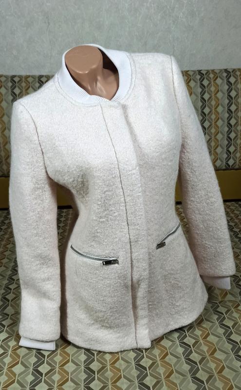 Состояние идеальное, без нюансов. Классное нежное стильное укороченное пальто букле на размер с-м. Цвет ближе всего к фото 2. Молнии функциональные, закрывают карманы) Подкладка - подкладочная ткань, полиэстер. Длина 71см, плечи 41см, ПОГ 50см, ПОТ 44см, ПОБ 51см, рукавчик от плеча 62см с манжетом. Покупайте и носите с удовольствием!)
