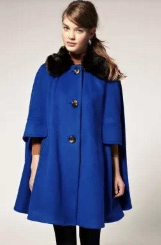 Шик для модной яркой смелой красавицы пальто-кейп, невероятной красоты. Размер... до 56. На фото манекен 46 размеров. В новом состоянии с запасной пуговицей. Мех искусственный, не отстегивается. Цвет как на первом фото
