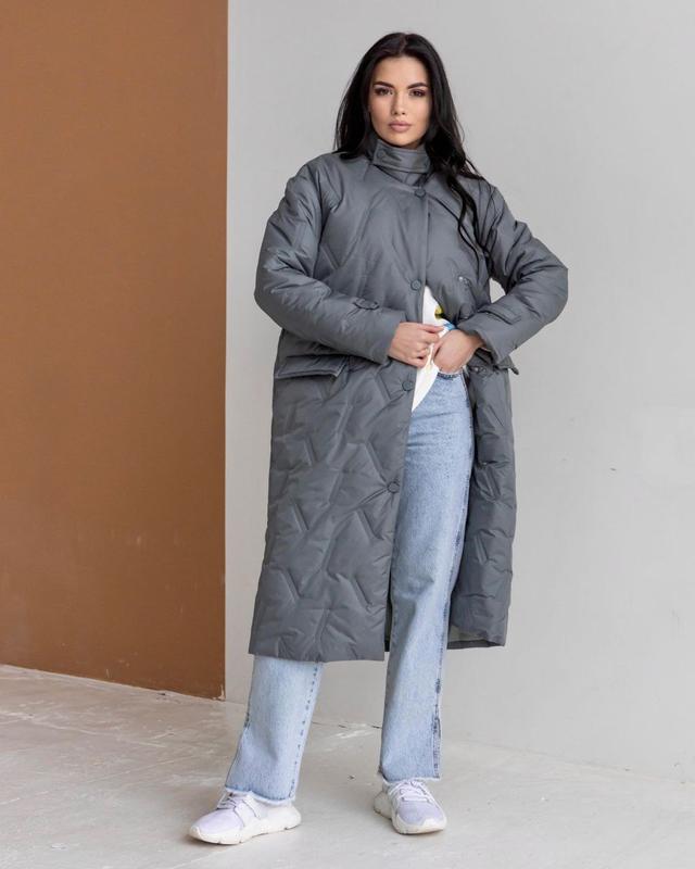 ✓Цвет: серый, пудра,фисташка,индиго ✓Размеры: 40,42,44,46,48,50, ✓Длина: 109 см ✓ Плащевка припаяна при помощи ультразвука на синтипоне 150 Температурный режим до -5 Leoлан