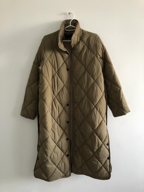 Стеганое пальто, сочного оливкового цвета 🫒 С личных вещей, состояние нового, одевалось 2 раза 👌 Размер S, подойдет на XS-M Замеры на фото