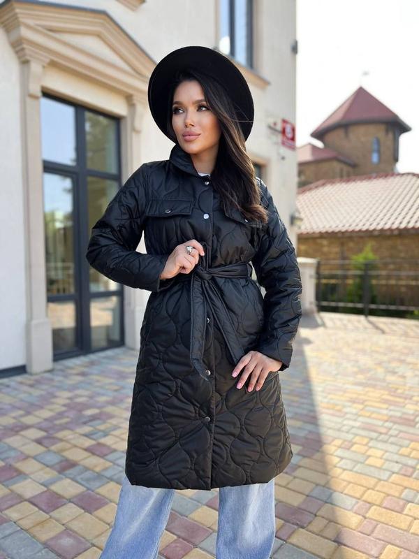 Пальто стеганое с поясом Модель: 23026 Размеры : 42-44, 46-48, 50-52, 54-56 Ткань: Плащевка Лаке стеганая, с карманами и поясом, на кнопках. Наповнювач холофайбер Цвета: графитовый, черный, мокко, оливковый, молочный Размеры : 42-44,46-48, 50-52, 54-56 Объем груди : 100,108, 116, 124 Объем бёдер: 106, 114, 122, 130 Длина по спинке: 102,103, 104, 105 Длина рукава: 62,63,64,64 Цена 1250 грн. Имеется накладной платеж с предоплатой 150 грн ♥️🇺🇦