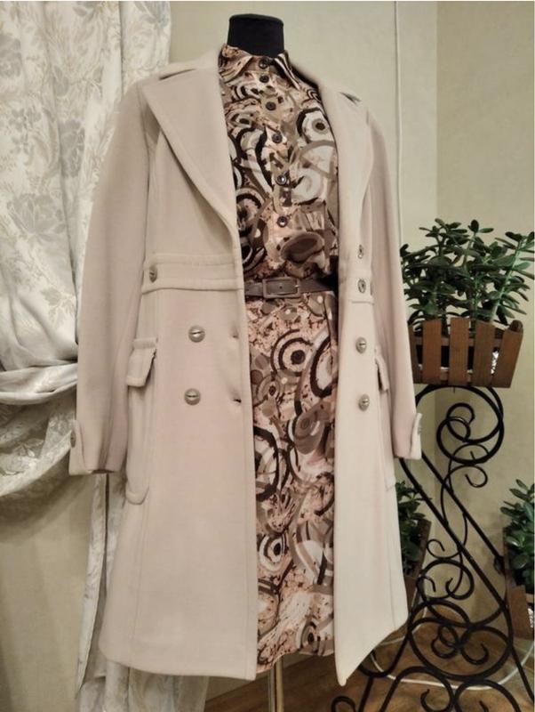 Стильне пальто тренч, красивий колір, фасон прямий, злегка приталений, цікавий фасон, Склад Поліамід 40%, Вовна 60% Розмір виробника 50 ( маломірить ) Об'єм талії 82-85 Об'єм стегон 105-108 Обхват грудей 98-102