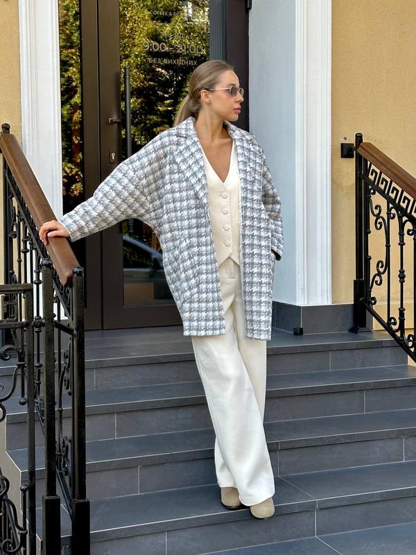 Пальто Мод: 345 Матеріал : твід пальтовий Принт: сірий , капучино Розмір: S, M 345 С Груди до 100 Талія вільна Бедра до 100 Довжина по спинці 85 Довжина рукава від горла 66 М Груди до 110 Талія вільна Бедра до 110 Довжина по спинці 89 Довжина рукава від горла 68