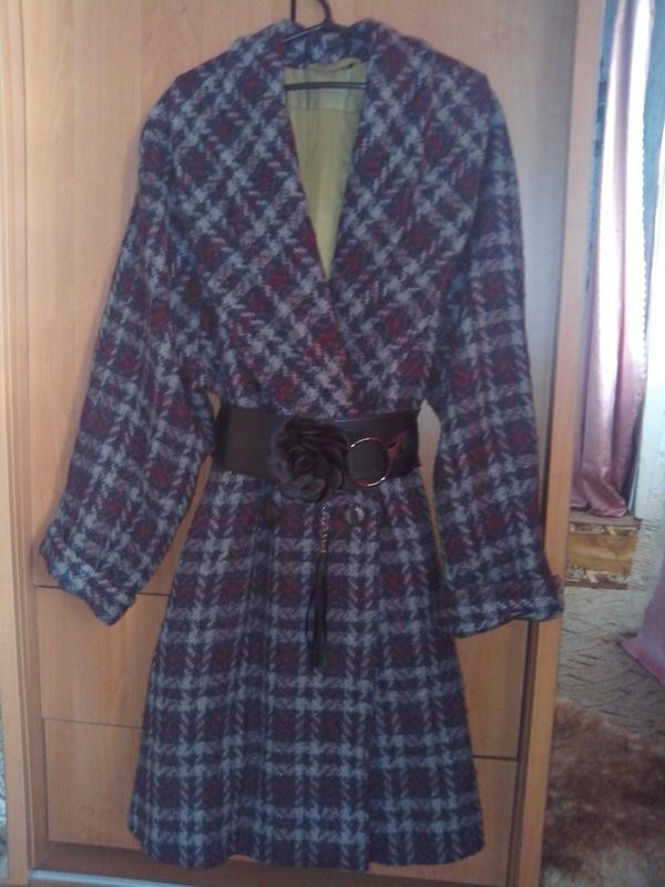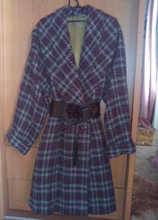 Ооооочень красивое демисезонное пальтишко, пошив "Колокольчик" ( или "солнце-клёш" ) в актуальную клетку с шалевым воротником, застёгивается на одну пуговку, которую можна и + и -. За счёт такого свободного кроя подойдёт и на 42, 44, 46, 48 размер, замеры: длина по центру спинки 95 см, рукава 73 см без заката. Красиво смотрится и с поясом и без. Ткань - шерсть с атласной подкладкой. В идеальном состоянии. Пожалуйста, пишите, звоните, интересуйтеся:-)...