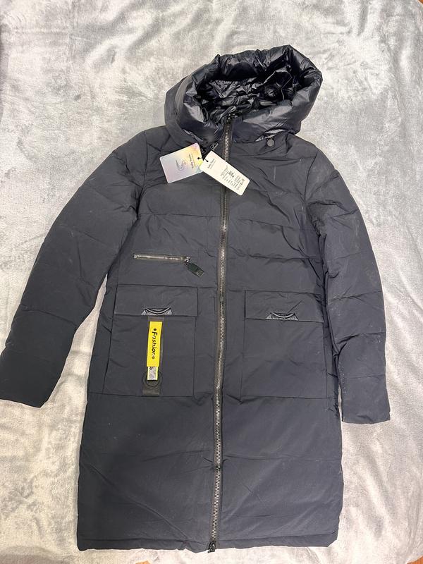 Зимняя куртка пальто, ткань водоотталкивающая, капюшон не съемный,размер m черная, L желтая M - плечи 39; пог 50; длина рукава 61; длина 90 L- плечи 39; пог 52; длина рукава 62; длина 95