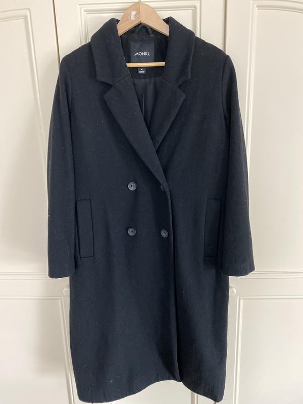 Тепле, плотне пальто - кокон. Размер указанного М, но лучше будет на S, потому что неширокие рукава. Состояние очень хорошее. Из недостатков : немного загибается лацкан - см. последнее фото, и ткань притягивает к себе всякие пилючки и ворсинки - нужно шить антистатиком. Сзаді є шліца. Длина 107, пог 55, длин. Рукава 60, ширина рукава 17, поб 57. Бирка с составом срезанная, в составе есть шерсть, но не пайка какой процент