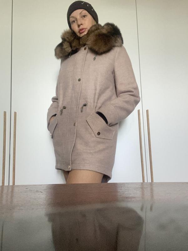 Размер m 44 ый мой объем бюста 94 то сидит хорошо Ворот отстегивающийся на кнопках натуральный песец, цвет пудра