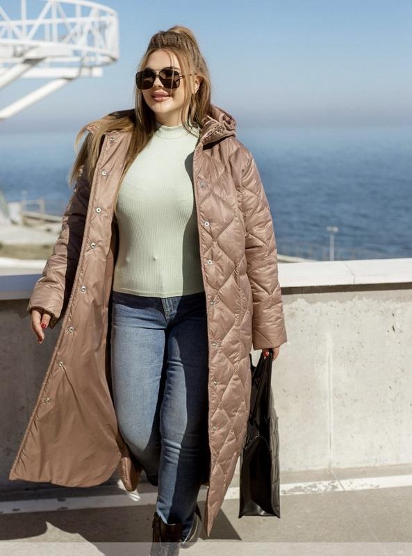 МАТЕРІАЛ: Плащівка, наповнювач- синтепон , силікон 200 (50% силікон 50 % синтепон), підкладка ( до - 15°С) РОЗТЯЖНІСТЬ: немає розтяжності Колір: зелений, синій, капучино,хакі, бордо, чорний, сірий. Довга стьобана куртка з пришивним капюшоном, високим коміром і довгими рукавами. Такий варіант курток майорить на стильних фешн показах вже другий рік та досі не втрачає своєї популярності. Куртка застібається на ряд кнопок спереду. Ми додали також накладні кишені на основній частині виробу. Така куртка легко поєднується з будь-якими елементами гардеробу, а також в ній буде однозначно тепло, адже ми додали наповнювач синтепон 200 та силікон. Доповніть образ високими черевиками та сумочкою і сміливо вирушайте у справах. Орієнтовні заміри готового виробу: 46-48 р-р: довжина куртки 123см, довжина рукава від плечового шва 63см, обхват рукава 36см, ОГ - 106см, ОТ -106см, OC -112см. 50-52 р-р: довжина куртки 125см, довжина рукава від плечового шва 64см, обхват рукава 38см, ОГ - 112см, ОТ -112см, OC -118см. 54-56 р-р: довжина куртки 126см, довжина рукава від плечового шва 66см, обхват рукава 42см, ОГ - 120см, ОТ -120см, OC -126см. 58-60 р-р: довжина куртки 127см, довжина рукава від плечового шва 67см, обхват рукава 44см, ОГ - 128см, ОТ -128см, OC -134см. 62-64 р-р: довжина куртки 128см, довжина рукава від плечового шва 68см, обхват рукава 48см, ОГ - 140см, ОТ -140см, OC -148см. 66-68 р-р: довжина куртки 129см, довжина рукава від плечового шва 69см, обхват рукава 50см, ОГ - 146см, ОТ -146см, OC -154см ❗️За вашим бажанням можемо зробити додаткові заміри перед відправкою 🤗 РЕКОМЕНДАЦІЇ ПО ДОГЛЯДУ: ручне прання при температурі не більше 30 градусів ☑️Залежно від кольоропередачі Вашого монітору, відтінок виробу може дещо відрізнятися. 🚚Відправка до 3 робочих днів, наразі робочі дні фабрики: понеділок, середа, субота. 🔹Оплата на рахунок ФОП 🔹Накладний платіж по передоплаті (Нова пошта, Укрпошта ) 🔹Обмін та повернення З радістю відповім на ваші питання, допоможу підібрати розмір🌷 2412