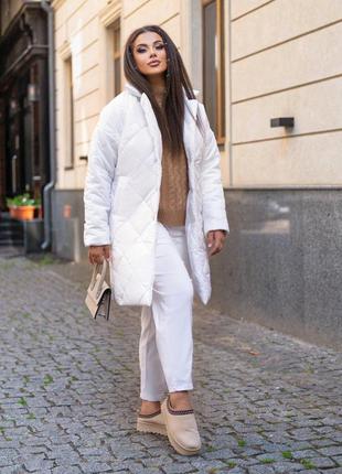 Пальто ▪️Размеры: 46-48, 50-52, 54-56, 58-60 ▪️Цвета: электрик, трава, желтый, малина, белый, черный ▪️Ткань: плащевка Лаке, синтепон 150-ка, подкладка Свободное, удобное пальто до колена, застегивается на три кнопки (производство Турция), по бокам карманы, отложной воротник, длинный рукав.