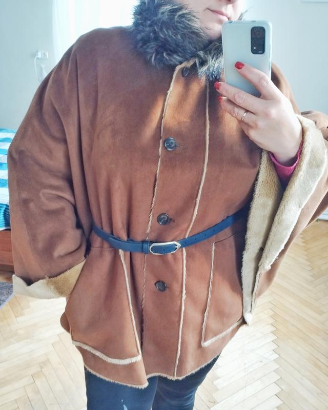 пончо с мягусиньким мехом, достаточно теплое,стан идеальное,можное под поясок,можно без