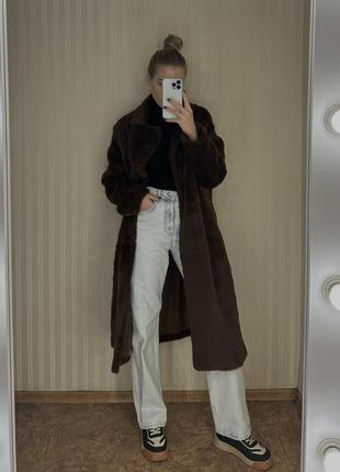 Удлиненная шуба на подкладке, без застежек, в коричневом цвете Замеры плечи 53 приспущенные, рукав от горловины 79 Пог 63 пог 62 Поб 62 Длина 117 Мои параметры: Рост 173 ОГ- 87 OT-64 0C-93