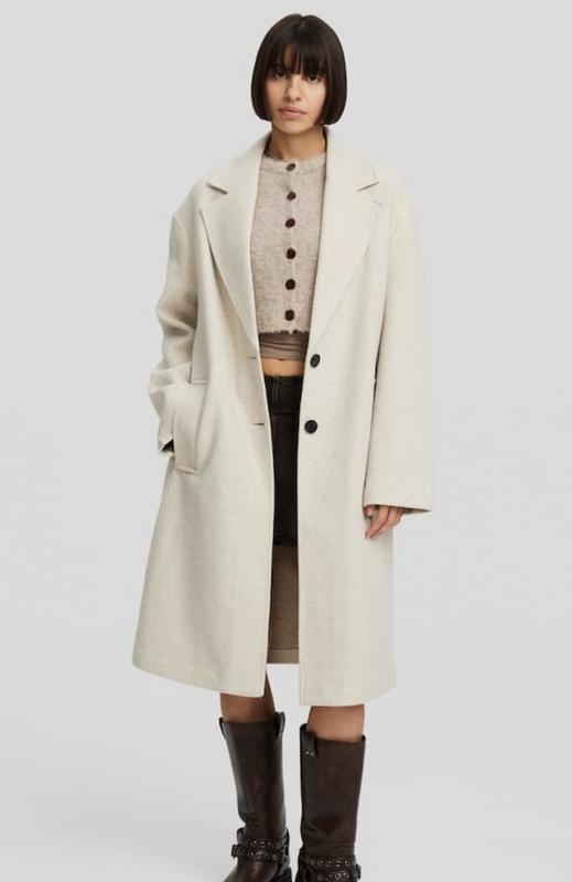 Размер по биркеs, бумажная бирка срезана, длина 90 см, грудь 52 см, рукав спущенный, от горловины 69 см, пальто без подкладки, плотная ткань, застегивается на 1 пуговицу
