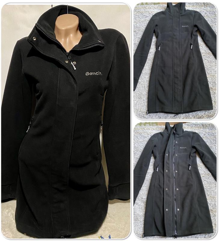 Пальто-бенч, спортивное пальто-толстовка BENCH с воротником стойкой р. S -42 Цвет: черный Отличная незаменимая вещь от Bench — модное и уже не доступное спортивное пальто черного цвета размера S. Демисезонная материя, не тонкая, плотная -снаружи как толстый флис, изнутри как материя, подкладки нет, карманы на молниях, куртка на молнии и кнопках, сбоку внизу регулятор ширины, нарукавники с отверстием для пальца небольшие нюансы, Размер - написано S Ширина (по груди) - 44см Ширина (по талии ) - 41см Ширина (по бедрам) -47 см Длина -85 см Рукав -66см, плечо 11.5см