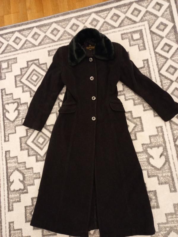Італійське,вовняне пальто.80% вовна.В ідеальному стані.Розм.38-40.Комір із штучного хутра,зйомний.Довж.127 ,плечі 45 рукав 61 НОГ 54,НОТ 49 НОС 55.Темно-сірого кольору.