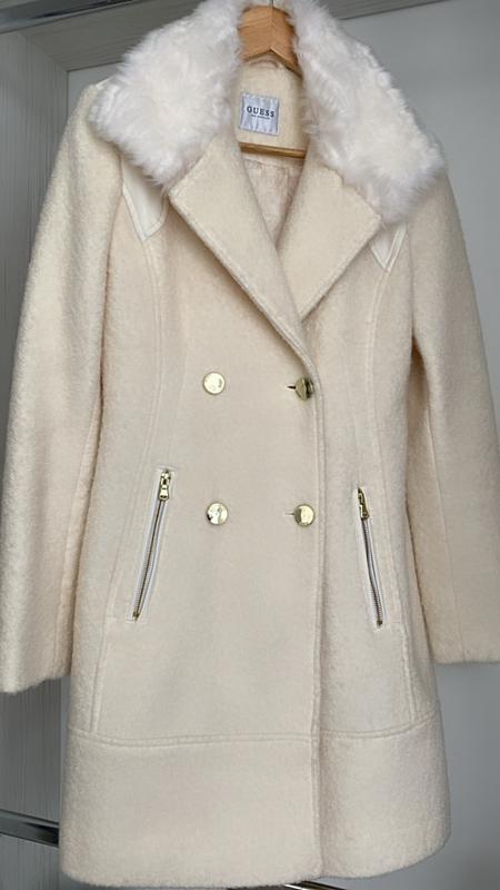 Молочное пальто с мехом
