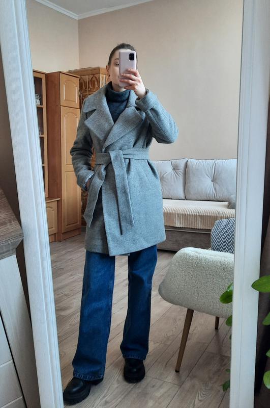 укороченное шерстяное пальто серого цвета с поясом и мехом песца, размер xs, длина 83 см, длина рукава 60см, подкоренный рукав 58см ширина под руками 48см