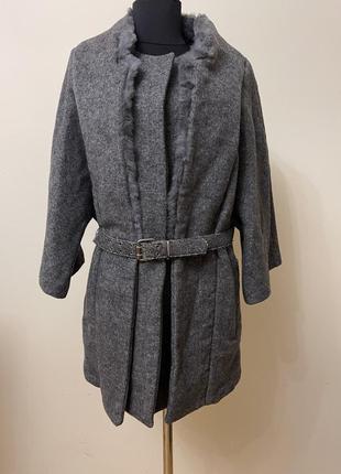 Коротке пальто, Silvian Heach. Размер L. Лучше подойдет на М. Рукав 3/4. ПОГ 51 см, ПОС 51 см, длина 78 см, рукав от горловины 60 см, ширина рукава 24 см. Новое. Вовна 80 %. Мех натуральный. Эффект, обтрилась ткань на поясе.