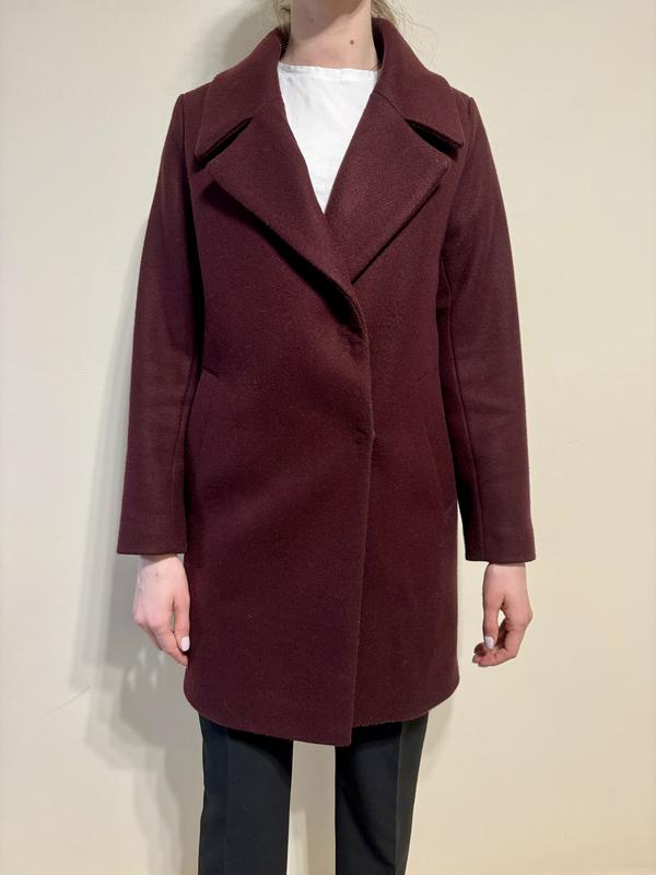 Пальто турецкого производителя, в винном цвете размер 34 можно хс-с есть еще дополнительно пояс, состав 60% шерсть 40 полиэстер,не кашлатится и можно стирать в стиральные машинки, рост модели 172, дополнительные детали в Приват