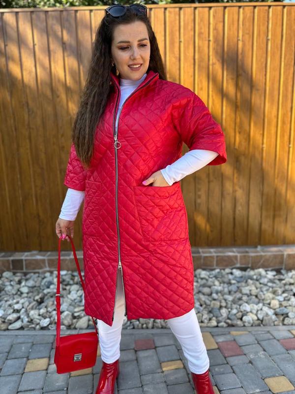 Пальто Модель 133VL Ціна: 1400грн Тканина: стьогана плащівка на синтепоні ( щільність 100-ка), підкладка. Візерунок : РОМБ Кольори: хакі, червоний, синій, капучіно, чорний, білий( до 62-го) Розміри : від 48 до 68 Наявність уточнюйте