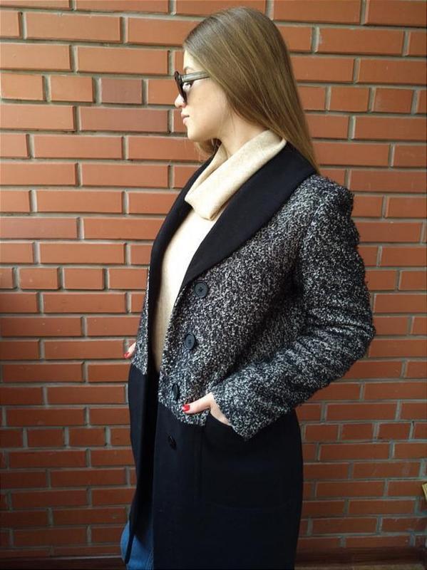 Стильне трендове пальто "єврозима" . Можна носити до - 10. Підійде демісезон. Підкладка всередині хороша з інноваційним утеплювачем, дуже тонкий матеріал, але добре тримає тепло. У відмінному стані, після хімчистки. Але не вистачає одного ґудзика знизу. Легко можна замінити будь-яким, до того ж він зовні прикривається тканиною. Розмір С. До нього ще йде натуральний комір із песця. Підкладка всередині стьобана. Без дефектів. Основний матеріал: Вовна - пальтова тканина Оздоблювальний матеріал: Пальтова тканина контрастного кольору. Підкладка: Атласна, 100% нейлон Утеплювач: Високоякісний "sliptex" 150 Хутро: Знімний, песець Довжина виробу: 95,5 см. РОЗМІР S