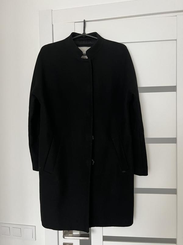 Черное пальто прямого кроя от бренда Tom Tailor. Размер указанного xs, будет и на s. На мой рост 162 пальто выше колен. Состояние очень хорошее.