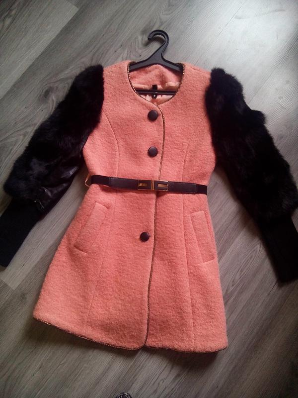 рукава комбинированные - сверху мех кролика, низ чтоб непротирался из эко кожи, а также резинка вязанная указан размер М но маломерит на С длина 76см пог 43см + шов выточный пот 34-35см поб 45-46см рукав 60см
