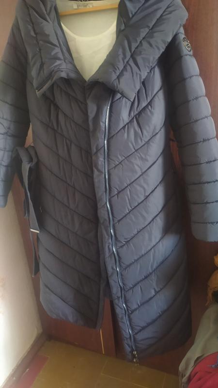 пальто зимнее, очень теплое, размер 52, темно синего цвета, приталенное, есть пасок, капюшон.