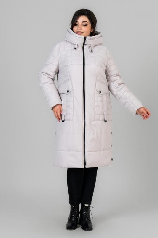 р.50: ОГ - 116см, ОТ - 114см, ОБ - 120см; ширина рукава - 21см; ширина манжеты - 15см; ширина спинки - 41см; р.52: ОГ - 120см, ОТ - 118см, ОБ - 124см; ширина рукава - 22см; ширина манжеты - 15см; ширина по спинке - 42см; р.54: ОГ - 124см, ОТ - 124м, - 12см - 12см - 130см; ширина рукава - 23см; ширина манжети - 16см; ширина спинки - 43см; р.56: ОГ - 128см, ОТ - 128см, ОС - 134см; ширина рукава - 24см; ширина манжети - 16см; ширина спинки - 44см; р.58: ОГ - 132см, ОТ - 132см, ОС - 140см; ширина рукава - 25см; ширина манжети - 17см; ширина спинки - 45см; р.60: ОГ - 136см, ОТ - 136см, ОС - 144см; ширина рукава - 26см; ширина манжети - 17см; ширина спинки - 46см; Длина рукава: 65 см Длина изделия по спинке: р.50, 52 - 105см; р. 54, 56 - 108см; р. 58, 60 - 109см