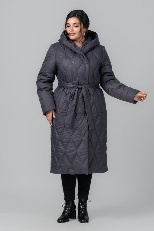 Деми женское стеганое пальто на тинсулейте еврозима с поясом большие размеры 50-60 баклажа...
