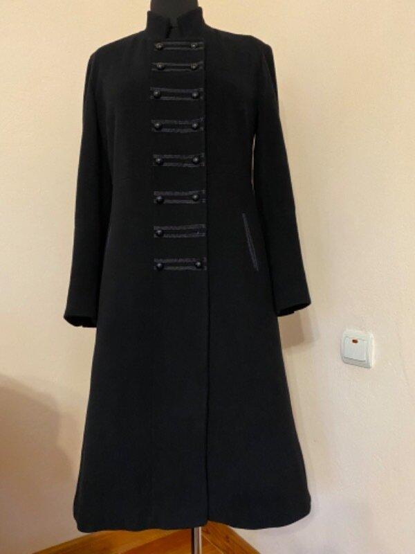 Классная вещь из шерсти, ткань мягкая, пару раз одетое было, карманы зашиты еще. Длина - 115см, плечи - 45см, рукав от плеча - 65см, пог - 55см, пот - 49см, поб - 55см, высота шлица сзади, поэтому бедра больше могут быть.