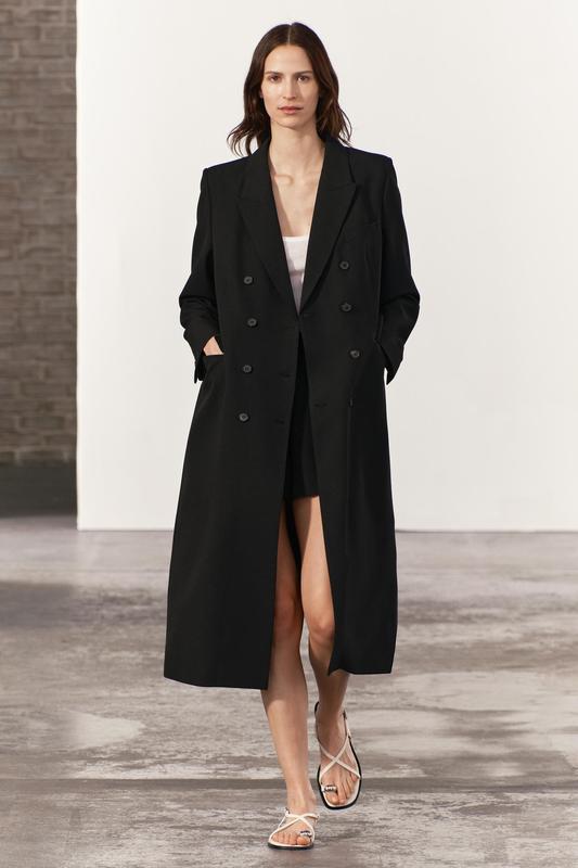 КОЛЛЕКЦИЯ ZARA WOMAN Приталенное пальто из 29% вискозы. Воротник с лацканами и длинные рукава с манжетами на пуговицах и проймами. Передние карманы с клапанами. Подкладка в тон. Двубортный перед с застежкой на пуговицы. в наличии М размер пог 45см пот 43см поб 52см плечи 39см рукав 61см длина 1.14 состав ВНЕШНЯЯ ОБОЛОЧКА 68% полиэстер 29% вискоза 3% эластан ОБОЛОЧКА 100% вискоза