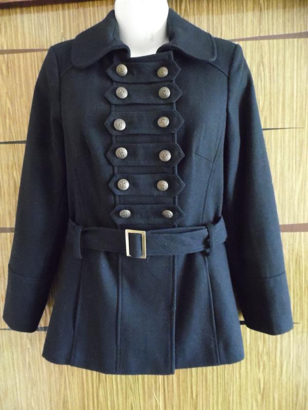 Полупальто деми-зима GEORGE размер 12 (40)- идет на 46-46+. Ткань драп – шерсть 45%, вискоза 6%,полиэстер 29%, нейлон 5%, акрил 13%, хлопок 2% – мягкий, плотный, теплый; подкладка правок. шовк – полиэстер. Цвет темно-синий, подкладка в тон. Спереди внизу врезные карманы. Застегивается на 4 мет.пуговицы, имитация двубортной застежки. ЗАМІРИ: Плечи - 40 см Длина рукава от проймы - 63 см Груди – 50(100)см Талия - 44(88)см Бедра - 55(110)см+, свободный крой Длина изделия - 72 см