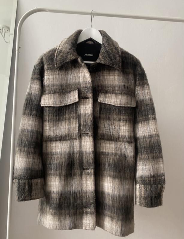 Красивое пальто, теплое, имеет принт в клетку Размер с Состояние нового, одеяла 2 раза