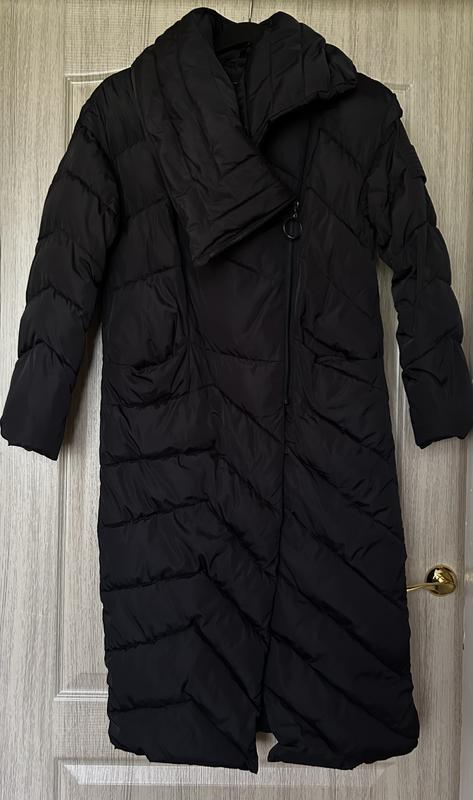 Пальто зима ,має цікавий крій,виглядає дуже стильно) має кишені,застібка на замок до верху на бік Розмір S Довжина 107 ПОП 55 см. ПОГ 53 см. ПОТ 50 см. ПОС 50 см. Рукав спущений,від горловини 65 см. Є маленький нюанс (фото додала)
