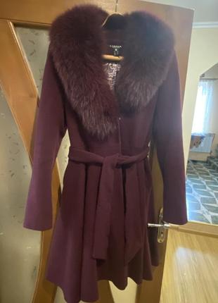 Пальто зимове , довжина до колін колір бордо . стильне і комфортне