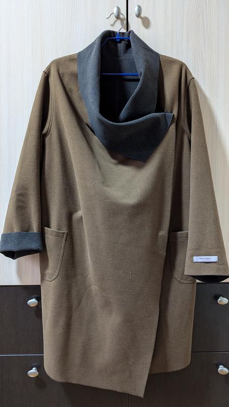 Пальто, кардиган женский. Ткань - тонкий мягкий драп. Весна, осень. Прямой крой. Длина по спине - 88 Ширина по спине - 57 Рукав от шеи - 74 Плечо приспущенные