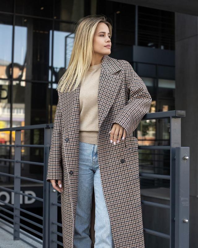 Пальто женское шерстяное двубортное оверсайз демисезонное, на пуговицах, длинное, гусиная...
