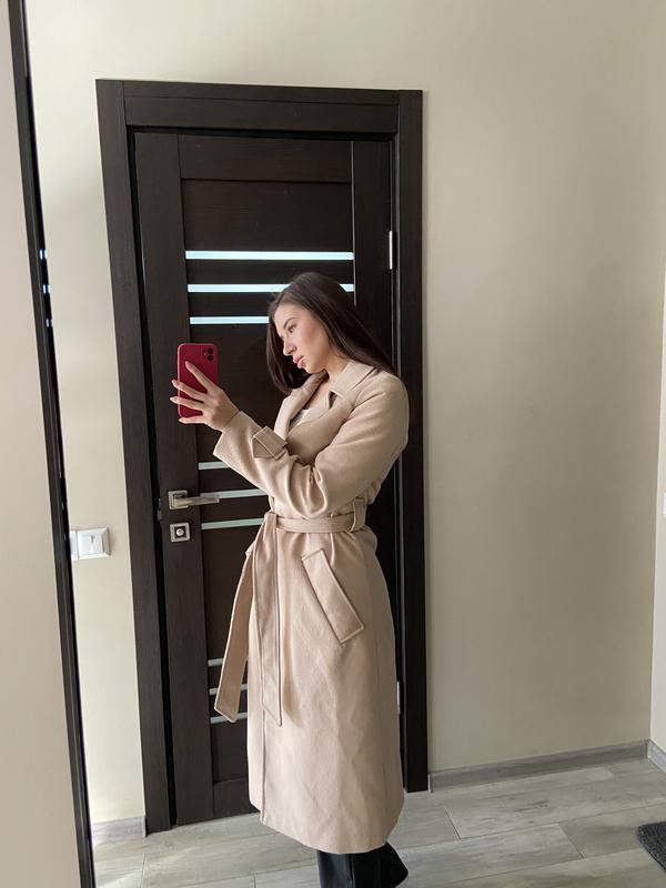 Пальто теплое кроя тренча, размер С. Одето на рост 164см
