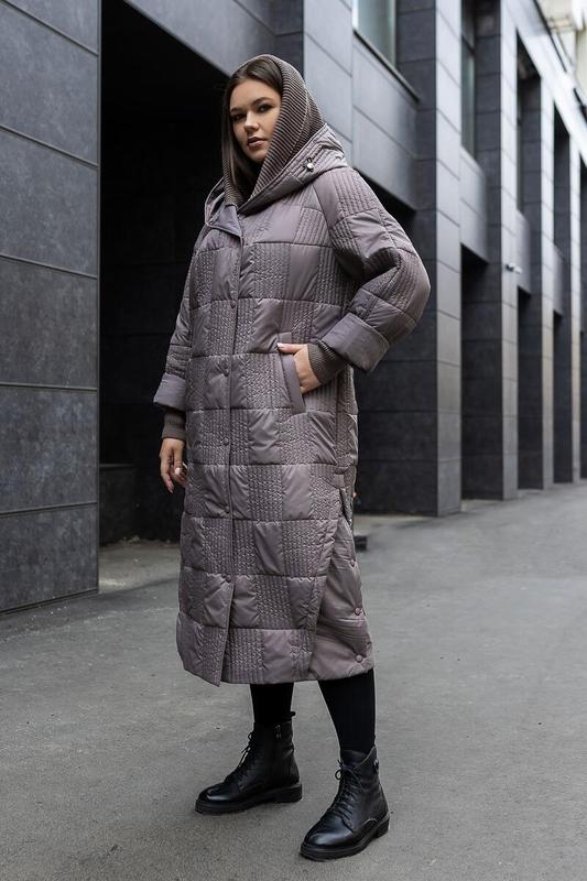 Оригінальне подовжене демісезонне пальто з наскрізь простьобаної плащової тканини. Перед Вами по-справжньому універсальне рішення на кожен день, яке не тільки є унікальним, гарним, та зручним, а і практичним - його легко поєднувати з різним типом та стилем одягу. Застібається на блискавку та кнопки. Дві прорізні кишені. Рукав реглан для свободи рухів, має внутрішній манжет довяз в тон виробу, який при бажанні можна зняти, кріпиться на ґудзики. Пальто має два капюшони. Один каптур незнімний класичний із плащової тканини з куліскою, інший із турецького трикотажу - знімається, на ґудзиках. Дане пальто є ультрасучасним, та трансформаційним. Завдяки тому, що трикотажний каптур та манжети знімаються, це дає можливість його власниці створювати нові трендові образи, та гратися зі стилем, змініюючи його від спорт шику до класичного, елегантного. З обох боків пальто має імітацію розрізів на кнопках. Виготовлено з плащової тканини. Утеплювач: мікропух 100 та slimtex 60. Є ідеальним рішенням для холодного міжсезоння.