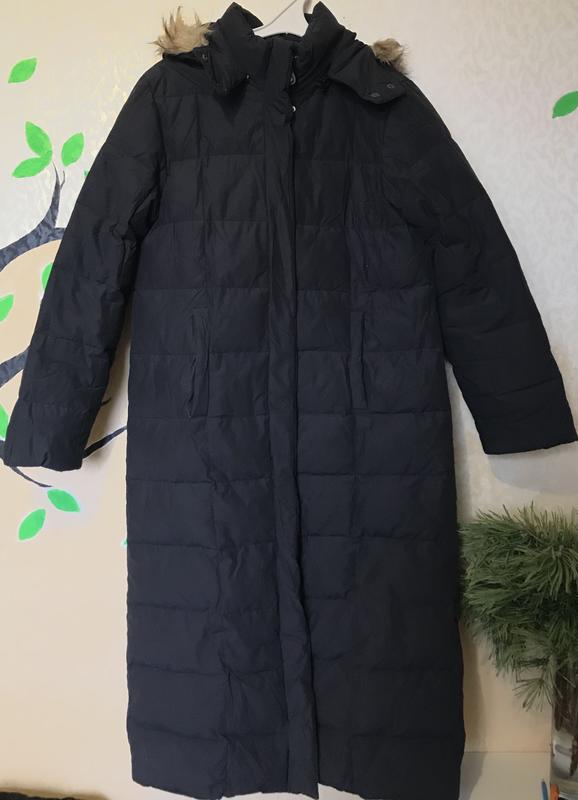 Теплое пуховое пальто прямого кроя. Размер M-L. Хорошо стирается в стиральной машине. Пух не взбит. Замеры: длина 117см, плечи 43см, ПОГ 53см, ПОБ 57см, рукав от плеча 62см
