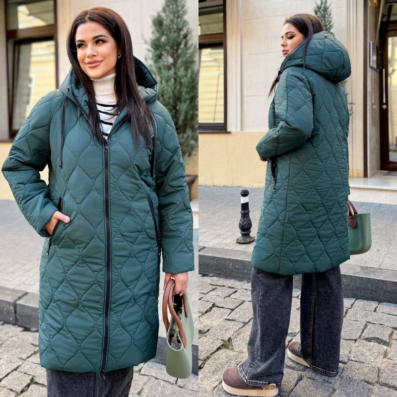 Пальто тепле ✨Модель №4409- св41890 ✨Размер: 42-44, 58-60 ✨Ткань: плащевка (плотная, дышит, не продувает, водоотталкивающая), наполнитель - силикон 200 г/м2 (тоннее синтепон, более гибкий и теплый, в отличие от синтепона, лучше держит тепло, не садится и быстро восстанавливает форму), подклад - принт. Качественная фурнитура. ✨Цвет: черный, зеленый, индиго Замеры: Размер 42-44 ОГ - 112 см, ОТ - 108 см, ОБ - 114 см, длина - 98 см, рукав - 70 см Размер 46-48 ОГ - 116 см, ОТ - 112 см, ОБ - 120 см, длина - 100 см, рукав - 71 см Размер 50-52 ОГ - 122 см, ОТ - 120 см, ОБ - 128 см, длина - 100 см, рукав - 74 см Размер 54-56 ОГ- 128см, ОТ - 126см, ОБ - 134см, длина - 100см, рукав - 75см Размер 58-60 ОГ - 134 см, ОТ - 132 см, ОБ - 140 см, длина - 104 см, рукав - 75 см отправка 1-5 рабочих дней.
